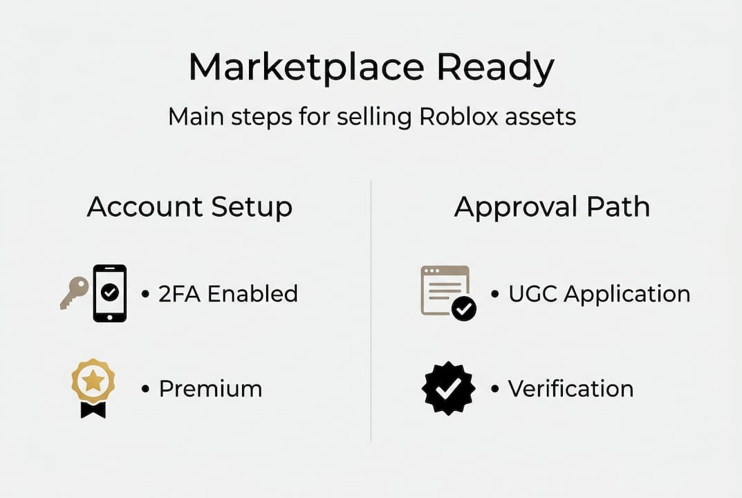 You need Roblox Premium, 2FA enabled, a good moderation history, plus account or group verification for certain asset types like UGC items.